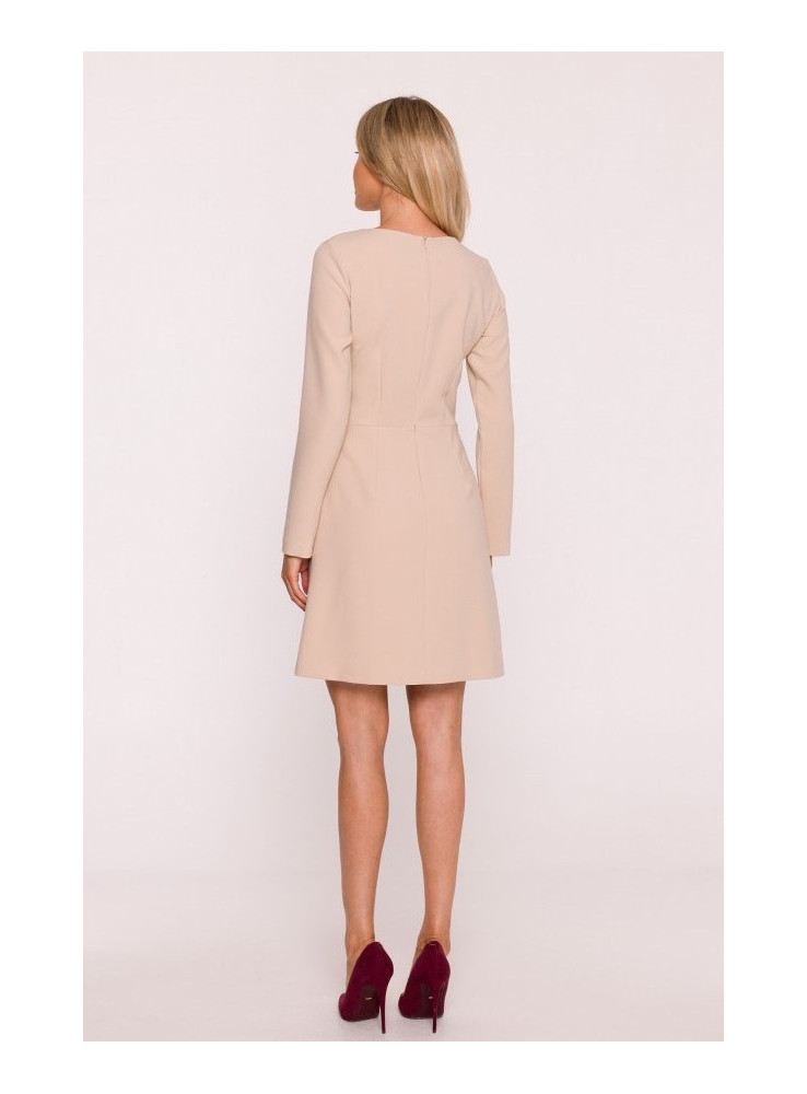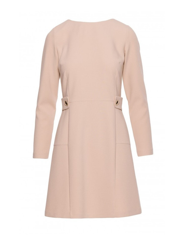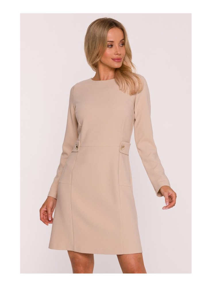 S419 Suknelė su dekoratyvinėmis sagomis ties juosmeniu - smėlio spalvos