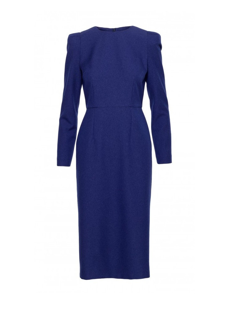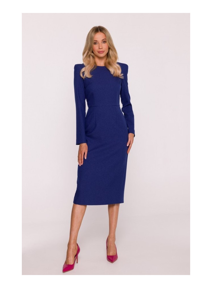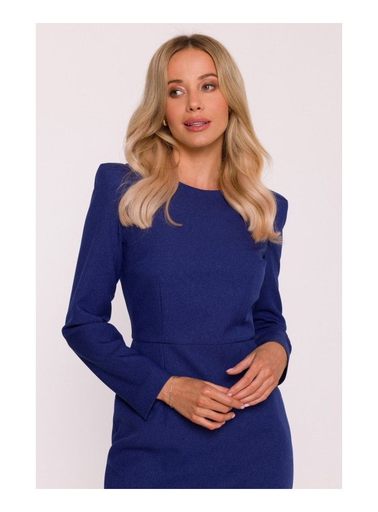 S412 Pieštukinė suknelė su dekoruotais pečiais - mėlyna