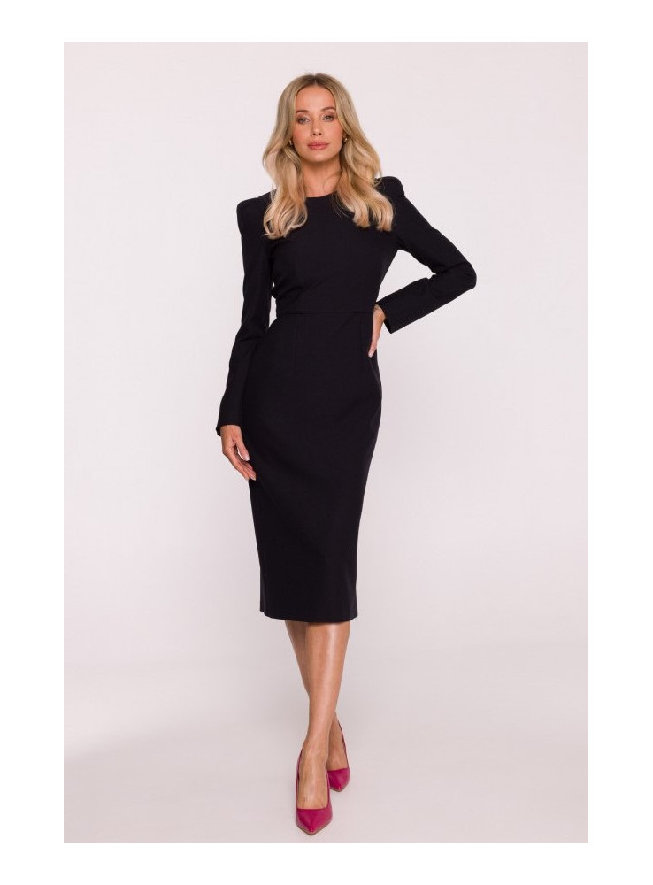 S412 Pieštukinė suknelė su dekoruotais pečiais - juoda
