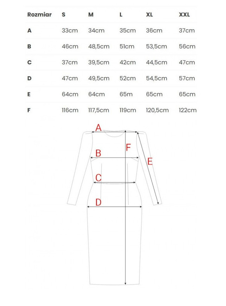 PAGRINDO AUDINYS 97 % poliesteris 3 % elastano ŠVARAS 95% poliesteris 5 % elastano MATERIALAS Medžiaga: lygus melanžo struktūros audinys INFORMACIJA APIE GAMINĮ Iškirptė: suapvalinta Rankovės: ilgos, tiesios Užsegimas: užtrauktukas nugaroje Kišenės: nėra Priedai: petnešėlės Pamušalas: su pamušalu Modelis: S412 Sukurta ir siūta Lenkijoje Modelis yra 174 cm ūgio, dėvi S dydį MADA IR KIRPIMAS Kirpimas: pieštuko formos sijonas su dideliu iškirpimu nugaroje Forma: prigludusi, šiek tiek siaurėjanti apačioje, aiškiai išreikšti pečiai Ilgis: midi, virš kelių