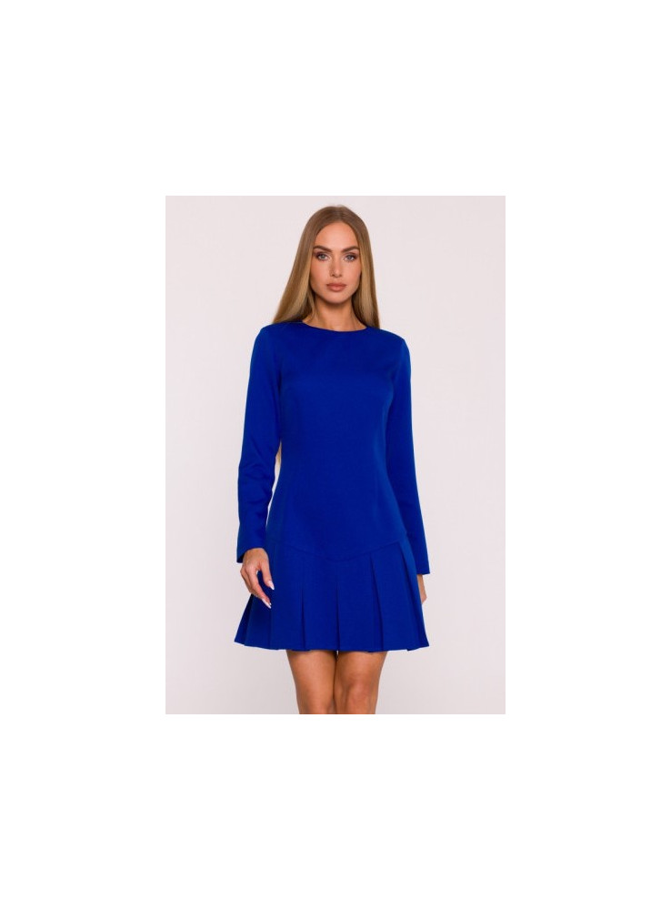 M872 Suknelė su kontrastingomis klostėmis - rugiagėlių mėlyna