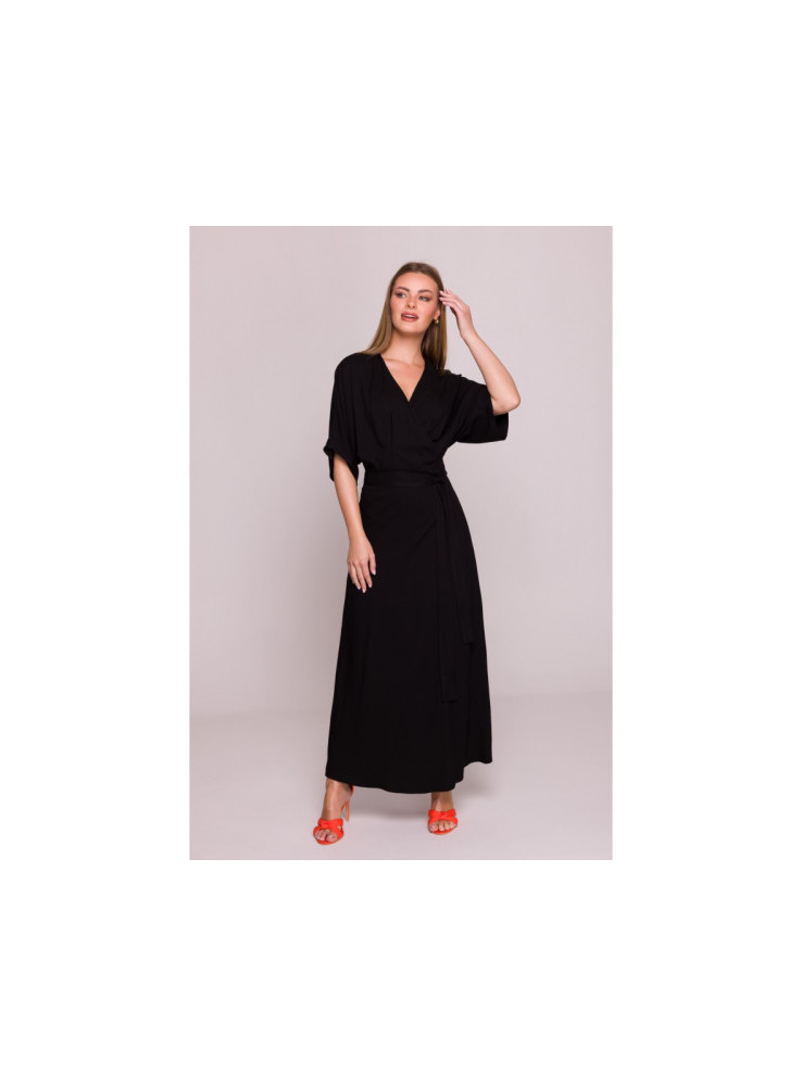 100 % viskozė MATERIALAS Medžiaga: lengvas viskozės audinys, satino apdaila INFORMACIJA APIE GAMINĮ Iškirptė: V formos Rankovės: laisvos, iki alkūnės Užsegimas: susirišimas ties juosmeniu Kišenės: nėra Pamušalas: nėra Modelis: S406 Sukurta ir siūta Lenkijoje Nuotraukoje pavaizduotas modelis yra 170 cm ūgio, dėvi S dydį MADA IR KIRPIMAS Kirpimas: laisvalaikio Forma: ties juosmeniu susegtas mazgas, apačioje platėjantis Ilgis: maksi ir (arba) ilgas Skerspjūvis: priekyje