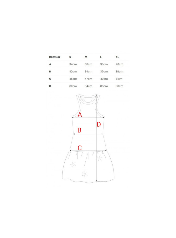 Pagrindinis trikotažas (suknelės viršus): medvilnė: 95 % 5 % elastano Suknelės apačia: apatinė dalis: 55 % nailono 42 % medvilnės 3 % spandekso MATERIALAS Medžiaga: viršus - minkštas medvilninis trikotažas; apačia - standus marškinių audinys INFORMACIJA APIE GAMINĮ Iškirptė: apvali iškirptė Rankovės: be rankovių (su plačiomis petnešėlėmis) Kišenės: nėra Užsegimas: nėra - modelis per galvą Modelis: M863 Sukurta ir siūta Lenkijoje Nuotraukoje pavaizduotas modelis yra 171 cm ūgio, dėvi S dydį MADA IR KIRPIMAS Kirpimas: prigludusi viršutinė dalis su dirželiais, primenančiais bokserines kelnaites, kontrastinga apimties apatinė dalis Forma: smėlio laikrodžio formos viršus, platėjanti, "bombos formos" apačia Ilgis: mini